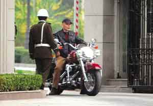 日前某天下午记者看见葛优骑着一辆崭新的国产某品牌大型摩托车驶出别墅大门,他穿着休闲夹克,戴着一顶棒球帽,端坐车上,满脸含笑,经过大门时还主动朝保安点头,看上去心情超爽,一出别墅大门,葛优便加大油门,绕着别墅疾驰起来,他姿态潇洒,动作娴熟,仿佛是一位正在前去参加“方程式”比赛的摩托骑手。几分钟后,葛优结束了这次短暂的兜风,带着焕发出的一种少有的活力返回别墅。卓 伟