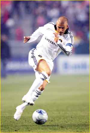 上周周末,洛杉矶银河队主场5:2大胜了美国芝华士队,身为贝克汉姆的好朋友,汤姆·克鲁斯带着他15岁的女儿伊莎贝拉和13岁的儿子科纳到体育场,为小贝所在的银河队加油助威,看台上靓佬汤看得眉飞色舞,球场上小贝踢得英勇异常。