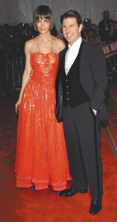 中新网5月7日电 据台湾媒体报道,日前,汤姆·克鲁斯携妻凯蒂一同出席时尚派对,派对上,一向以“时尚教主”著称的阿汤嫂装扮很失败,一身火红的拖地礼服却配了双宝蓝色的高跟鞋,不仅突兀,且显得阿汤哥更矮。