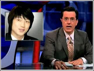 美国著名主持人柯尔伯特在电视节目中公开讽刺Rain。