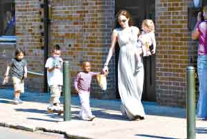 安吉丽娜·茱莉携儿女逛街 展超级星妈幸福姿态
