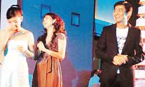 刘德华牵着朱丽华(左)的手。