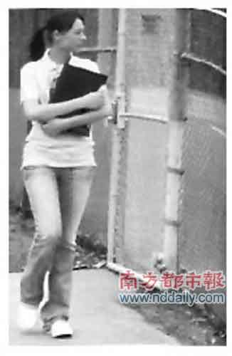 5月9日,香港周刊记者在三藩市发现梁洛施,当时是早上8点多钟,她手抱书本、英文报纸及笔记本,身穿粉蓝色POLO恤,浅蓝色LEVI‘S牛仔裤、CONVESE波鞋,扎着马尾,一派学生气息,与3月着皮草踩CHANEL与杨紫琼共进晚餐的模样相去甚远。