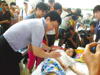前天成龙抵达成都后再次捐款,成都发布会前集体默哀一分钟,之后成龙要与人保一起合作支援灾区校舍的重建工作。随后他赶往了重灾区德阳,到现场去援助灾区群众,还前往德阳人民医院看望受灾儿童。