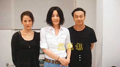 王菲(中)与杨乃文及Eason在央视合唱一曲《但愿人长久》。