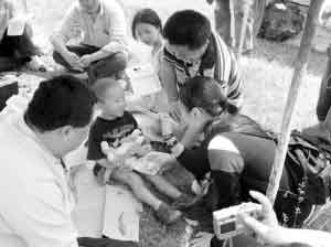 18日蒋勤勤随全国妇联“母爱在行动”特别行动小组抵达四川重灾区绵竹,把从北京带来的价值10万元的奶粉亲自送到了灾区母亲和孩子们手上,在临时搭建的简易帐篷里,蒋勤勤跟地震中失去双亲的孩子们玩耍、聊天,她说,孩子们要比她想象中的坚强,希望能有更多的人关心这些受灾母亲和儿童。