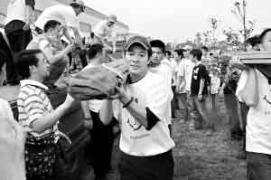 “世界华人都是一家人,我早就想来灾区了,今天都来晚了,但我会尽力去支援救助灾区群众的。”前天下午2时,中国红十字会总会和李连杰带着灾区群众最需要的食品、药品、帐篷等来到地震重灾区什邡蓥华镇,将物资及时送到了当地政府手中。当日的物资一共重达50吨,整整装载了7大卡车。李连杰表示,哪里最需要物资,壹基金将会把物资送到哪里。