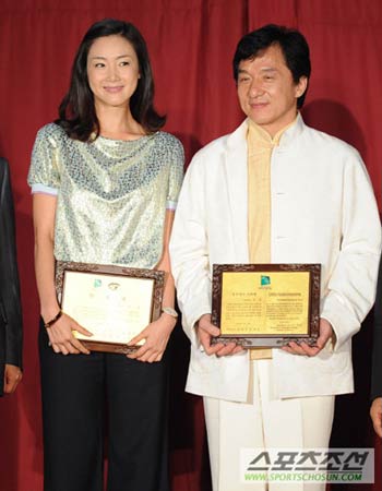 图文:成龙携韩星崔智友任韩流坞宣传大使