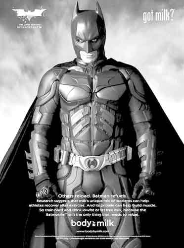 这次广告的宣传语是:“大家刻苦训练,然后喝低脂或脱脂牛奶吧。因为不是只有蝙蝠侠车需要加油。”该广告将于6月1日正式推出,而最新的蝙蝠侠系列电影则在7月18日上映。