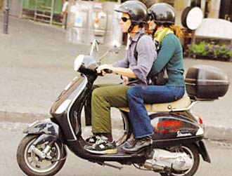 骑摩托逛罗马 罗伯茨与老公体验"平民浪漫"(图)