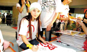 当天,范冰冰还呼吁大家为灾区捐款,并热心地为爱心捐款人签名。记者了解到,除了此次爱心T恤义募,大悦城还陆续开展了环保袋义卖等一系列公益活动,为四川地震筹募善款。