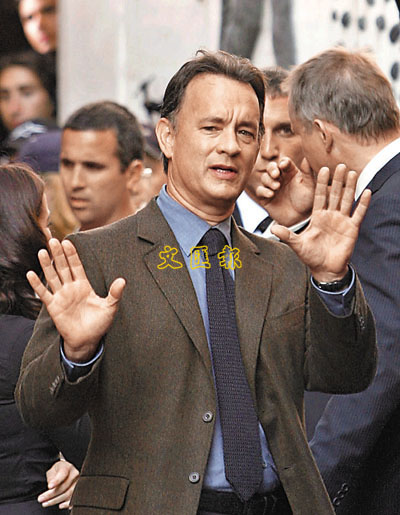 预期跌出百大的汤姆·汉克斯,看来心情未受影响。(文汇报图)