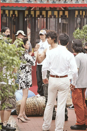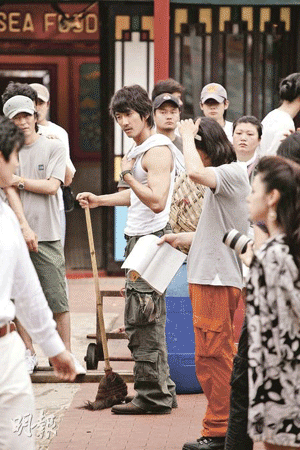 据香港《明报》报道,由于韩剧《伊甸之东》剧组要保持剧集内容的神秘,故记者采访时要保持远距离。不过现场得见,宋承宪的“扫地”装扮也有型过人,白色背心与军裤,展示健硕身形。而跟他有对手戏的Zoie也被其电眼电晕,不敢与他对望。