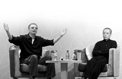 昨天的这个论坛虽是王家卫主持,但是他几乎把所有时间留给陈丹青,自称自己钦佩陈丹青多年,甘当配角。但是陈丹青却一点也不给他面子。两位大师一上台,记者们就纷纷拍照,闪光灯闪成一片。谁料,陈丹青刚跟大家问过好,就指着王家卫说:“我是被他绑架来的。”他接着诉苦道,“坐在这台子上,我不能抽烟。我一不抽烟智商就下降一半。虽然我知道抽烟不好。现在你们还不停拍我,我都快说不出话来了。”谈了一会,陈丹青突然又来了句:“今天我好倒霉,先是被绑架来,现在发现袜子没穿好,袜子帮太短,我不能把腿跷着坐,老这样端端正正地坐着,真累!”