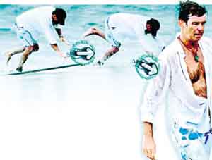 近日,皮尔斯·布鲁斯南在夏威夷度假,也许看到了海边不乏帅气的冲浪少年,这位中年帅哥也一时技痒起来,结果冲浪技术不精的布鲁斯南没划出多远就一头栽进了水里。布鲁斯南当时咳嗽不止,狼狈不堪,看来,用惯了高科技武器的大英雄邦德先生并未接受过全面的冲浪训练。