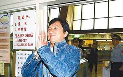 成龙昨傍晚离台,双手合十感谢台湾朋友。