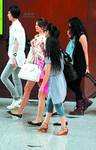 在林志玲身边也有几位非常漂亮、身材很好的美女,除林志玲外,几人都戴着墨镜,猛地看去,林志玲竟是其中最不起眼的一个。随后他们乘坐停在酒店门口的一辆车离开。据酒店的工作人员介绍,林志玲看起来非常友善,对待酒店的工作人员也都很礼貌,有工作人员和她聊起《赤壁》,林志玲也一点没有架子。一个酒店工作人员对记者说:“我原来以为林志玲的嗲是装出来的,但发现她平时说话也是这个样子,真是太温柔了。她的身材真是太好了!”