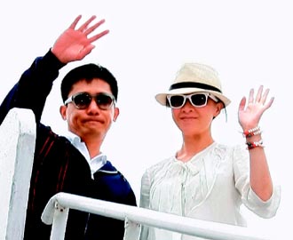 中新网7月25日电 梁朝伟(伟仔)和刘嘉玲昨天一早搭私人飞机飞离不丹,这是他们婚后首度公开露面,上午11时半即飞抵印度新德里。一对新人心情靓到极点,即使媒体冲入不丹机场的VIP室拍照也未遭驱赶,同行的林青霞被问到是不是要当“电灯泡”?她笑而不答。