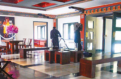 中新网7月25日电 梁朝伟、刘嘉玲不丹世纪婚礼,吸引30多位华人记者涉险入不丹抢镜,但举办婚礼的Uma Paro酒店全被封锁不得其门而入,昨虽已送走所有宾客,但仍不接受宾客入住,记者昨设法入内参观,原来员工必须花1天时间清理,而据了解,包下该酒店8天7夜至少要花50万美金(约合350万人民币)。