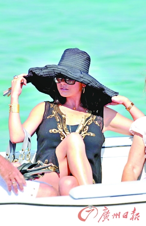 图文:泽塔·琼斯变身宫廷贵妇 与老公坐游艇出海
