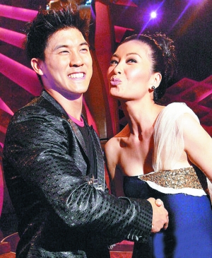 图文:伍咏薇台上要亲亲 摆花痴样成疯狂"粉丝王"