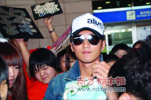 8月9日,谢霆锋忙完北京的活动,马不停蹄地赶到上海,为奥运录制节目。机场大批歌迷守候,谢霆锋头戴alive棒球帽,大墨镜加上一身的牛仔服,显得十分引人注目,一出现就吸引了大批粉丝围上前。