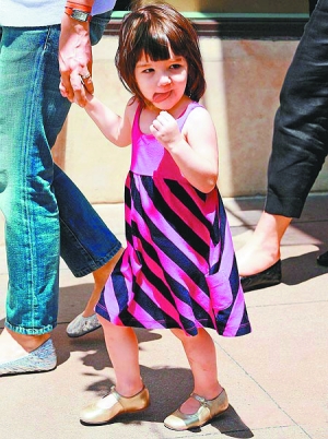 “阿汤哥”汤姆·克鲁斯的千金苏瑞曾获美国《OK!》杂志选为好莱坞“最会穿衣服的星宝贝”,引领儿童时尚潮流,但她日前穿一款条纹洋装上街,本·阿弗莱克的掌上明珠紫罗兰早半个月便已穿出门,苏瑞“衣Q公主”的封号面临挑战。