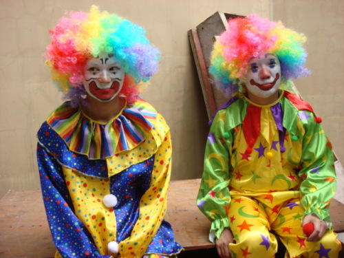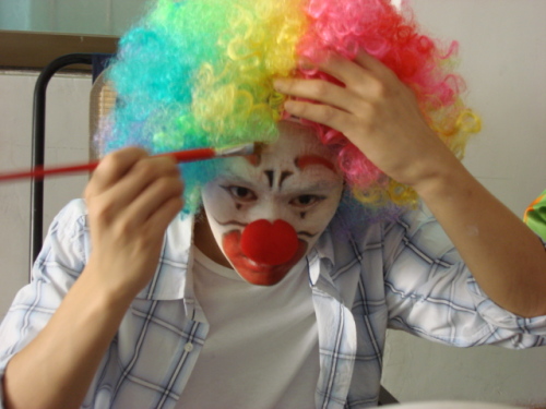 中新网8月14日电 据香港《太阳报》报道,张智霖日前在博客上公开几张化上小丑妆的有趣相,第一张相是他戴着爆炸头假发,忙于白面上加色样,而第二、三张相则是完成小丑妆,同小丑朋友合照,z中间还有一张是小丑张智霖拿着摄影机扮导演,可能他觉得张相太完美,故文字只得寥寥几句:“我是一个演员,也是…一个小丑。”