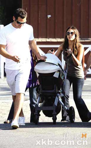 杰西卡·阿尔芭外出午餐 与老公轮流推婴儿车(图)