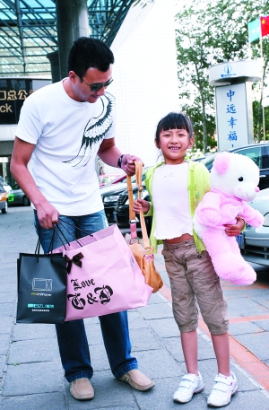 “爸爸年底就给你添个伴儿!(设计台词)”今年5月胡军带着女儿看望从地震灾区送到北京医治的孩子。玄反影 摄
