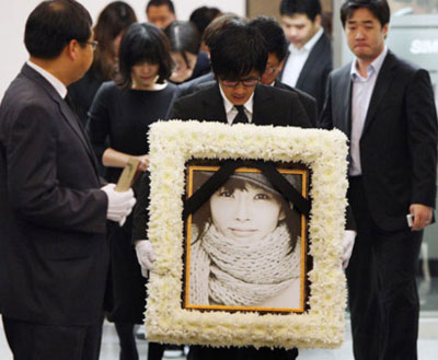 中新网10月6日电 本月2日以自杀结束生命的韩国艺人崔真实遗体告别仪式4日在亲友们的眼泪中庄严举行。