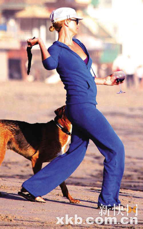 这位《意大利任务》中的女演员与她的母亲格达·塞隆(Gerda Theron)牵着手带着查理兹的狗儿们在马里布的海滩上散着步、喝着红酒,十分惬意。穿着宝蓝色运动衣的塞隆看上去非常放松,她一手拿着红酒,一手拿玩具逗玩自己的狗。