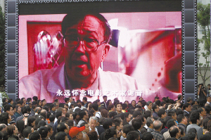 昨天下午,中国著名导演谢晋的遗体告别仪式在龙华殡仪馆举行,万名群众自发地从全国各地来到了龙华殡仪馆,向这个曾带给他们无数感动的电影大师告别。江泽民、温家宝、李长春、习近平等党和国家领导人均送来了花圈。谢晋生前的好友秦怡、李行、仲星火、牛犇,师出谢晋门下的刘晓庆、赵薇、范冰冰,以及演艺界人士吴思远、朱时茂、濮存昕、奚美娟、张瑜、贾樟柯等都前来送别谢老最后一程。