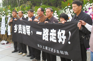 “乡贤谢导,一路走好!”昨日,为送谢晋最后一程,谢晋家乡——上虞的父老乡亲们也专程派代表来到上海。“谢晋是我们的骄傲,他一生都在用电影为底层人民说话。现在他走了,但我们一定会把他的电影梦想继续下去。”这位谢晋的老乡说。