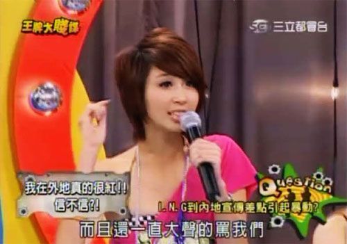 28日,台湾综艺节目《王牌大贱谍》播出主题为“在外地比台湾红的艺人”访谈。女子组合I.N.G在节目中公然宣称自己在大陆很红,并夸张讲述大陆歌迷的追星情节,同时嘲笑大陆的卫生习惯和饮食风俗。节目播出后,大陆网友纷纷表示愤慨,集体攻击I.N.G论坛和贴吧,并联名要求封杀该组合。