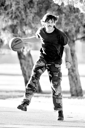 北京时间今天凌晨,惊悚片《以眼杀人》拍摄间隙,几名工作人员在离片场不远的一个球场上练习投篮。穿着迷彩服、军靴,戴着假发(他在片中饰演一名秘密特工)的克鲁尼也闻声而至。“嗨,伙计们,让我来一个!”