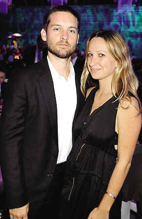 33岁的托比·马奎尔和31岁的珠宝设计师妻子于2003年相识,两人在2007年9月在夏威夷结婚,已经有一个2岁的女儿Ru-bySweetheart。珍·梅耶谈起自己的婚姻生活,一脸幸福感地说:"太完美了,一切都很完美!"