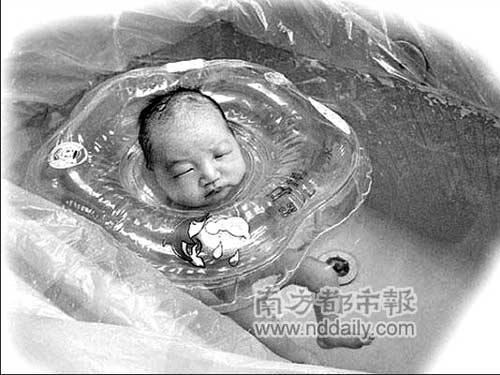 刚为人父的吴启华给女儿套上救生圈,相当有趣。