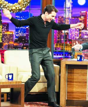 由于爱妻凯蒂·赫尔姆斯正在纽约演出《我的子孙》,女儿苏瑞也爱看歌舞片《歌舞青春》,靓佬汤似乎受她们母女影响,想证明自己能歌善舞。他13日做客美国知名脱口秀节目《今日秀》时说:“凯蒂喜爱歌舞剧,苏瑞也是,我想在银幕上载歌载舞。还记得小时候母亲工作时,我和其他姐妹就在家看《音乐之声》。 ”不过靓汤自称从没在电视上唱过歌,主持人杰·雷诺也没邀他表演,爱现的他居然主动模仿猫王经典曲《蓝色麂皮鞋》的歌舞,幸亏观众很买账惊呼连连。