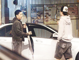 梁朝伟与刘嘉玲婚后各自忙碌,最近伟仔更为了新片《一代宗师》,天天积极苦练咏春拳。而日前晚上八时许,难得不用操练的伟仔独自驾驶其百万跑车,前往天后吃晚餐。不过,到达后伟仔竟无惧抄牌,匆匆把车停于路旁后,便急匆匆步入附近的蚝吧,逗留了一个多小时,才与嘉玲的女助手出来,但身旁却未见爱妻嘉玲。伟仔随后与助手步行前往取车时边走边聊,但见他毫无笑容,之后更与助手挥手道别,独自驾车离开。