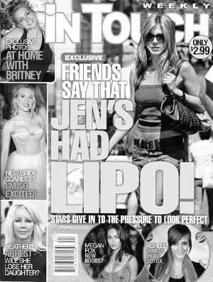 《In Touch》封面照中的安妮斯顿确实没《GQ》中的惊艳。