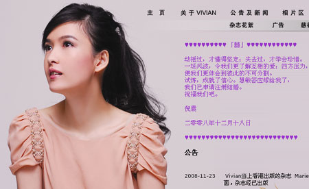 周慧敏个人官网贴出倪震的结婚声明,证实婚讯。