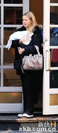 周二,刚刚生下一子的娜奥米·沃茨产后首次亮相,她带着刚出生11天的儿子Samuel Kai Schreiber 不顾当时的寒冷从纽约的家中走出,后面跟着孩子的父亲里夫·施雷伯(LievSchreiber)以及1岁大的长子亚历山大(Alexander),Samuel Kai Schreiber 则安静地躺在童车里。沃茨抱着儿子走出家门,体贴的老公怕累坏爱妻,急忙抢着抱儿子,不料走到一处冰面险些滑倒扔了孩子,所幸有岳母在一旁,才避免一场不必要的“灾难”。