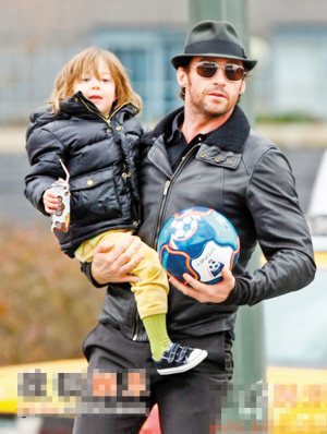 图文:最性感男星休·杰克曼街头大晒父爱
