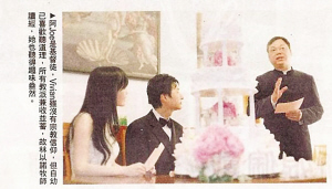 中西合璧,珠联璧合,是个美好回忆。可是之后的报道,让身为好友的MARK很有感触,看了那些形容婚礼的字眼,什么“寒酸”“鬼祟”“CHEAP嫁 ”,“令我很不明白,人家办喜事,为什么香港传媒会有这样损的文化?现场的朋友,都觉得这是最完美的婚礼,替一对璧人感到高兴,他们能够在彼此一手建立的家中,和四只猫儿一起分享爸爸妈妈的喜悦,是最完美的安排,他们光明正大的结婚,仪式完了立即和传媒分享照片,每个人都有不受骚扰的权利”。