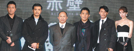 晚间“赤壁:决战天下”在信义威秀首映,导演吴宇森率领梁朝伟、金城武、张震、胡军等主角走上星光大道,唯一的红花林志玲再度成为瞩目焦点。片中小乔见到尸横遍野,忍不住伤心落泪,镜头里的她美丽绝伦,她却自觉哭得很丑:“这是我拍的第一场戏,早上就化好妆,一直等到傍晚才拍到我,那时我已经真的很想哭了。”