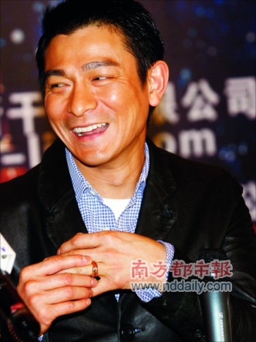 《游龙戏凤》昨日在广州造势,主角刘德华、舒淇现身发布会。刘德华自认戴在右手无名指的是婚戒,但随后又说:“不戴也会被人写(结婚),我怕什么?”在与记者纠缠自己是否已经结婚这个老问题时,他真情流露地说:“你们放心,那一天会出现的。我不会一个人终老,我很怕那样的。”