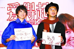 电影《爱得起》昨日在北京举行了大型新闻发布会,导演马伟豪及演员梁咏琪、陈柏霖、谭俊彦都有出席。当日,影片主创同时启动了“爱得起”明信片等一系列关于情人节的活动。