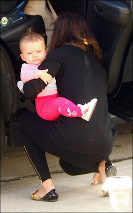 成为了妈妈的杰西卡·阿尔芭已经恢复了窈窕的身材,一身黑色,但是明黄色的书包成为了全身的亮点,星范十足。而怀抱中的闺女则是好像深思者这样,在想问题。
