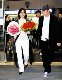 下午1点50分,苏菲玛索携男友克里斯托弗·兰伯特出现在北京T2航站楼。虽然这次的行程非常隐秘,但还是有少数媒体和影迷前往接机。两人一出现在入境大厅,便有影迷向苏菲·玛索送上一大束玫瑰花,她面带灿烂笑容和男友并肩前行颇显亲密,走出机场后即搭乘豪华座驾离去。